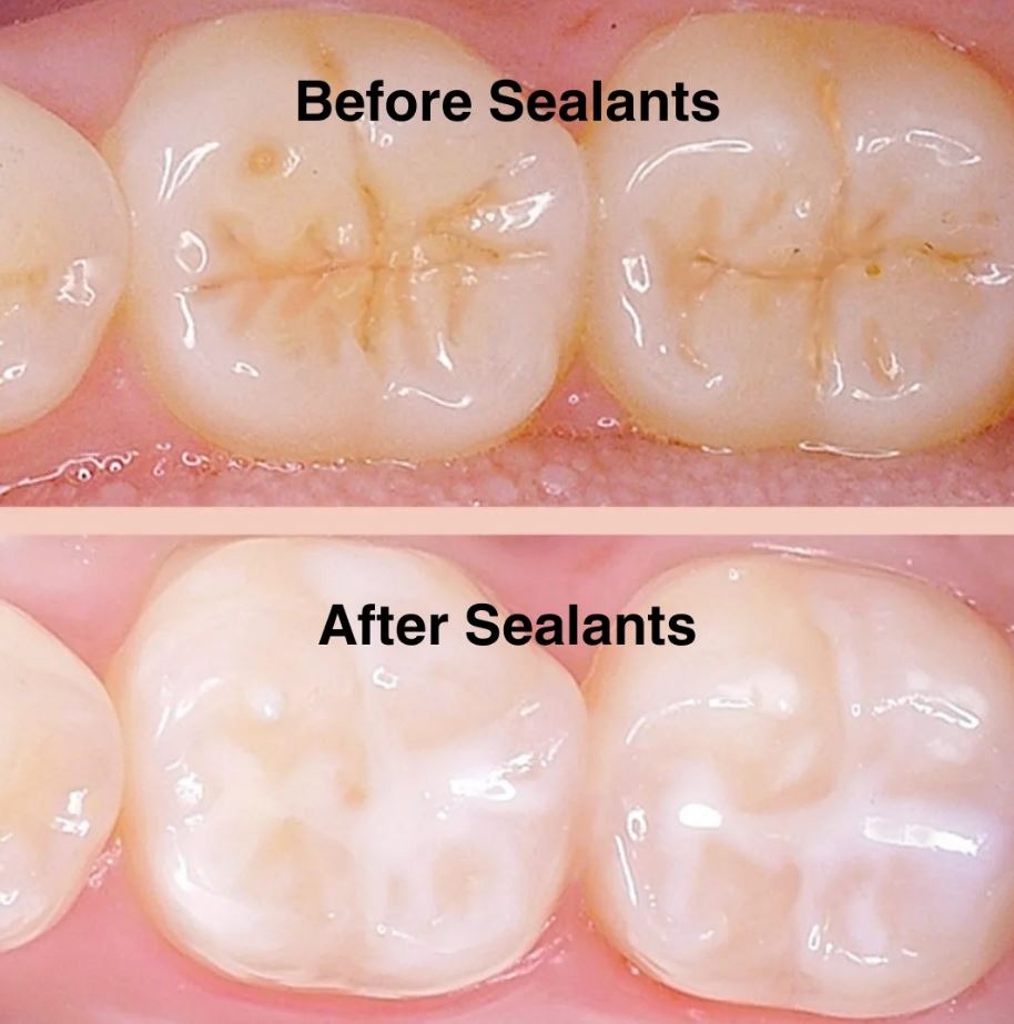 Our dental sealants are ultra-thin, BPA-FREE coatings applied to the chewing surfaces of the back teeth—typically molars and premolars. Because these teeth have deep grooves and pits, they’re prime spots for food particles and bacteria to hide. A sealant creates a smooth, protective barrier that prevents plaque from settling in hard-to-clean areas, significantly reducing the risk of cavities.